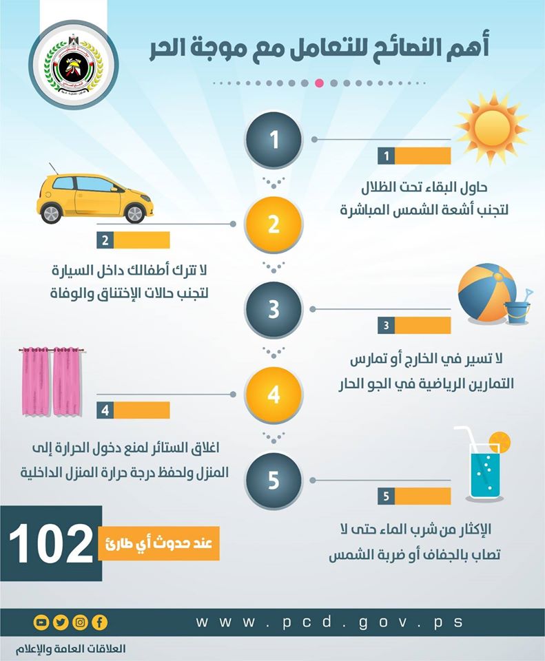 الدفاع المدني يوجه إرشادات للمواطنين للوقاية من موجة الحر وزارة الداخلية والأمن الوطني