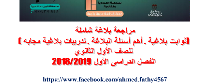 مراجعة بلاغة للصف الاول الثانوى ترم اول 2019 بالتدريبات المجابة واهم الاسئلة