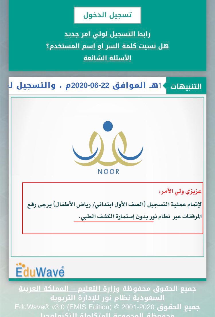 نظام نور دعم فني Sur Twitter تحديثات نظام نور عزيزي ولي الأمر لإتمام عملية التسجيل الصف الأول يرجى رفع المرفقات المطلوبة عبر نظام نور بدون استمارة الكشف الطبي