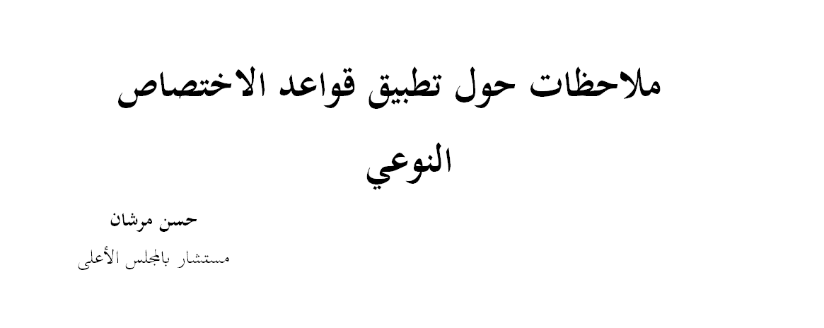 ملاحظات حول تطبيق قواعد الاختصاص النوعي حسن مرشان مستشار بالمجلس الأعلى