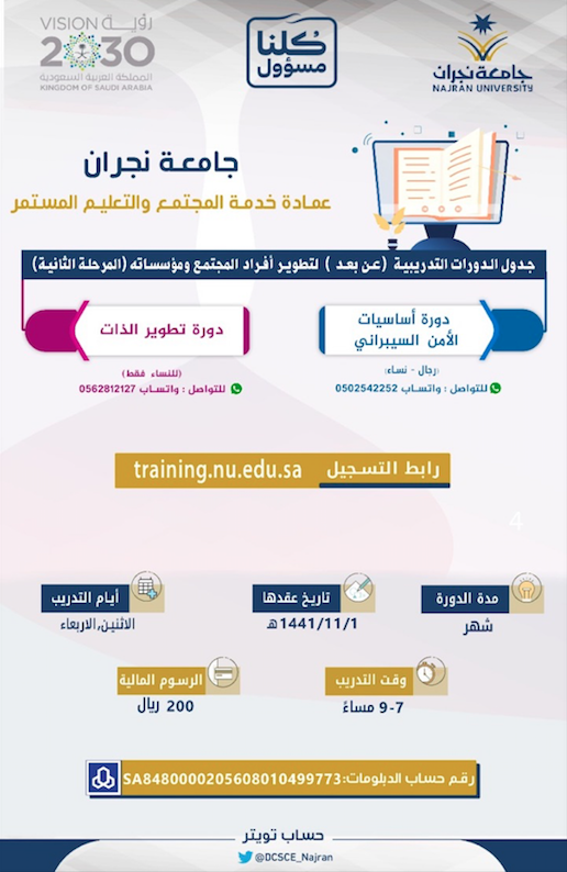جامعة الأميرة نورة On Twitter إعلان من كلية علوم الحاسب والمعلومات عن التسجيل في معسكر الأمن السيبراني الحصري في المملكة العربية السعودية لعام 2020م لدعم الطالبات وتأهيلهن لسوق العمل التقني بالتعاون مع