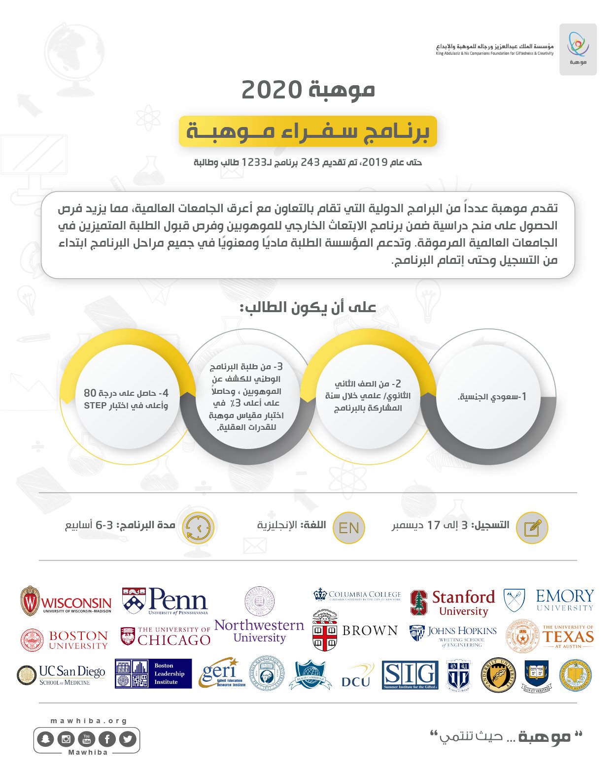موهبة On Twitter كن سفير الموهبة بانضمامك معنا في برنامج سفراء موهبة إذا كنت في الصف الثاني ثانوي علمي ومجتازا لمقياس موهبة بـ البرنامج الوطني للكشف عن الموهوبين ندعوك للانضمام معنا برامج موهبة الإثرائية الدولية خارج المملكة Https