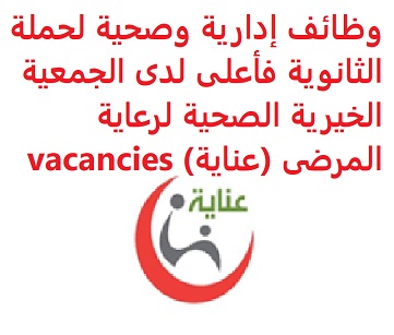 وظائف شاغرة في السعودية وظائف السعودية وظائف إدارية وصحية لحملة الثانوية فأعلى لدى الجمعية الخيرية الصحية لرعاية المرضى عناية Vacancies