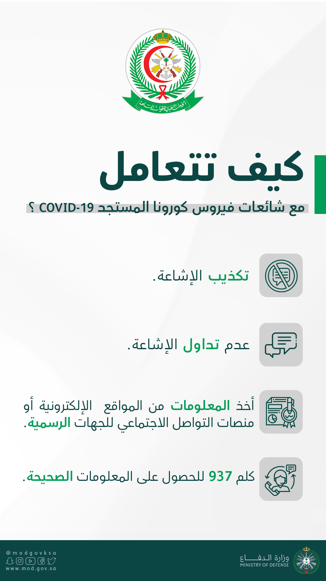 وزارة الدفاع On Twitter كيف تتعامل مع شائعات فيروس كورونا المستجد Covid19 كلنا مسؤولون كورونا الجديد الوقاية من كورونا كورونا